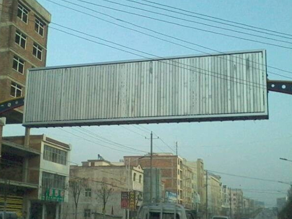三面翻广告牌是由一组并排的三棱柱组成,三棱柱由特制铝型材制作,通过电机驱动所有的三棱柱围绕各自中心轴转动,利用三棱柱的三个侧面形成三幅画面。所以三面翻广告牌具有三倍表现的空间和视觉动感的优势。